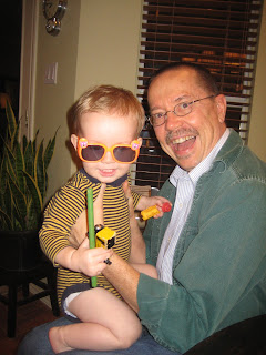 Zach and Grandpa Tom. Love those shades! This is a perfect picture to demonstrate Zach's current need to have three to six things in his hands at all times...